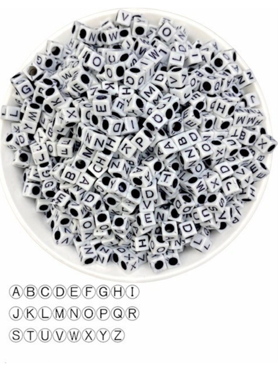 Beyaz Üzeri Siyah Küp Harf Boncuk